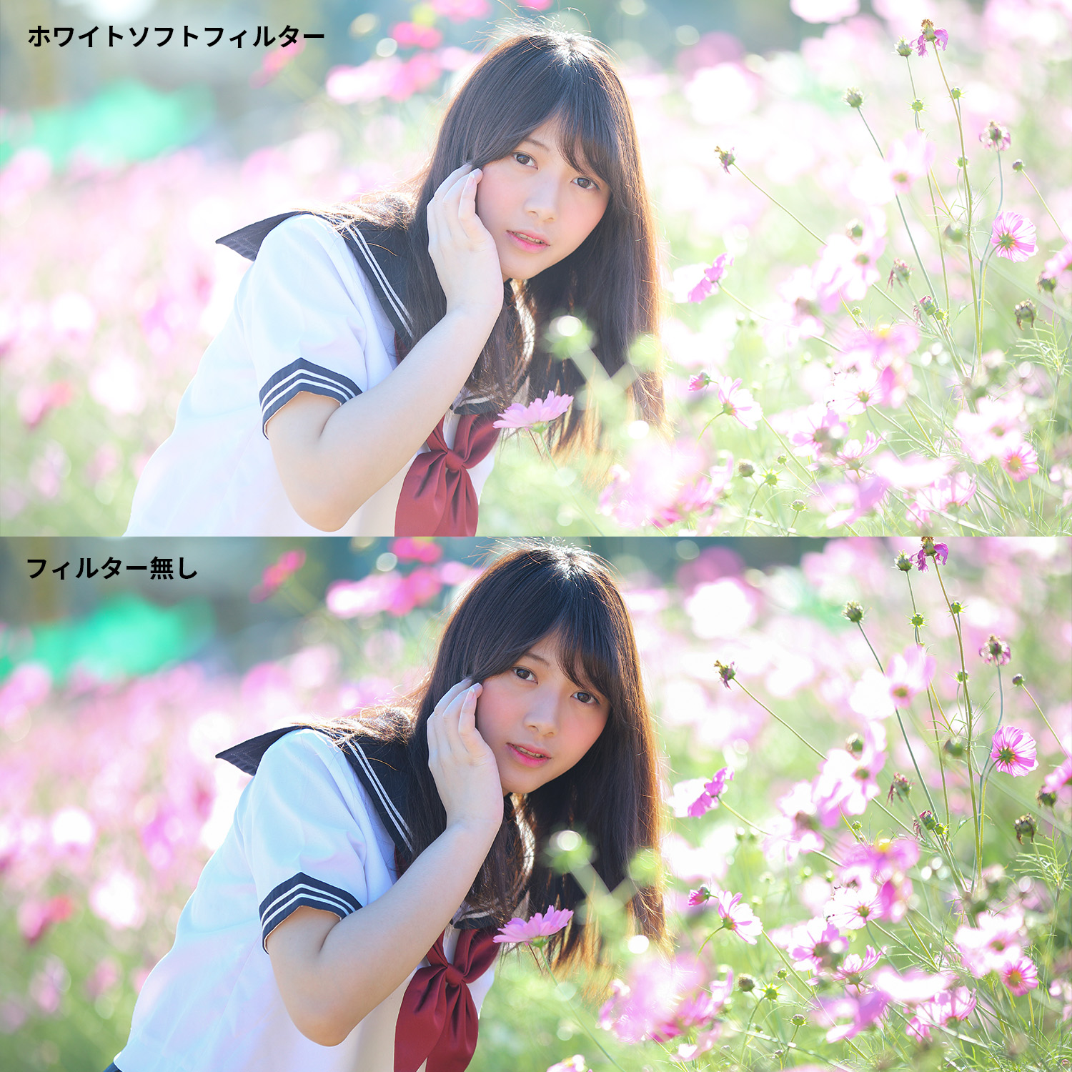 * 【Zníženie ostrosti a zjemnenie tónu】 Mäkký biely filter robí obraz jemným, ľahkým a priehľadným a môže tiež znížiť kontrast a sýtosť obrazu, čím vytvára svieži a zasnený vizuálny efekt