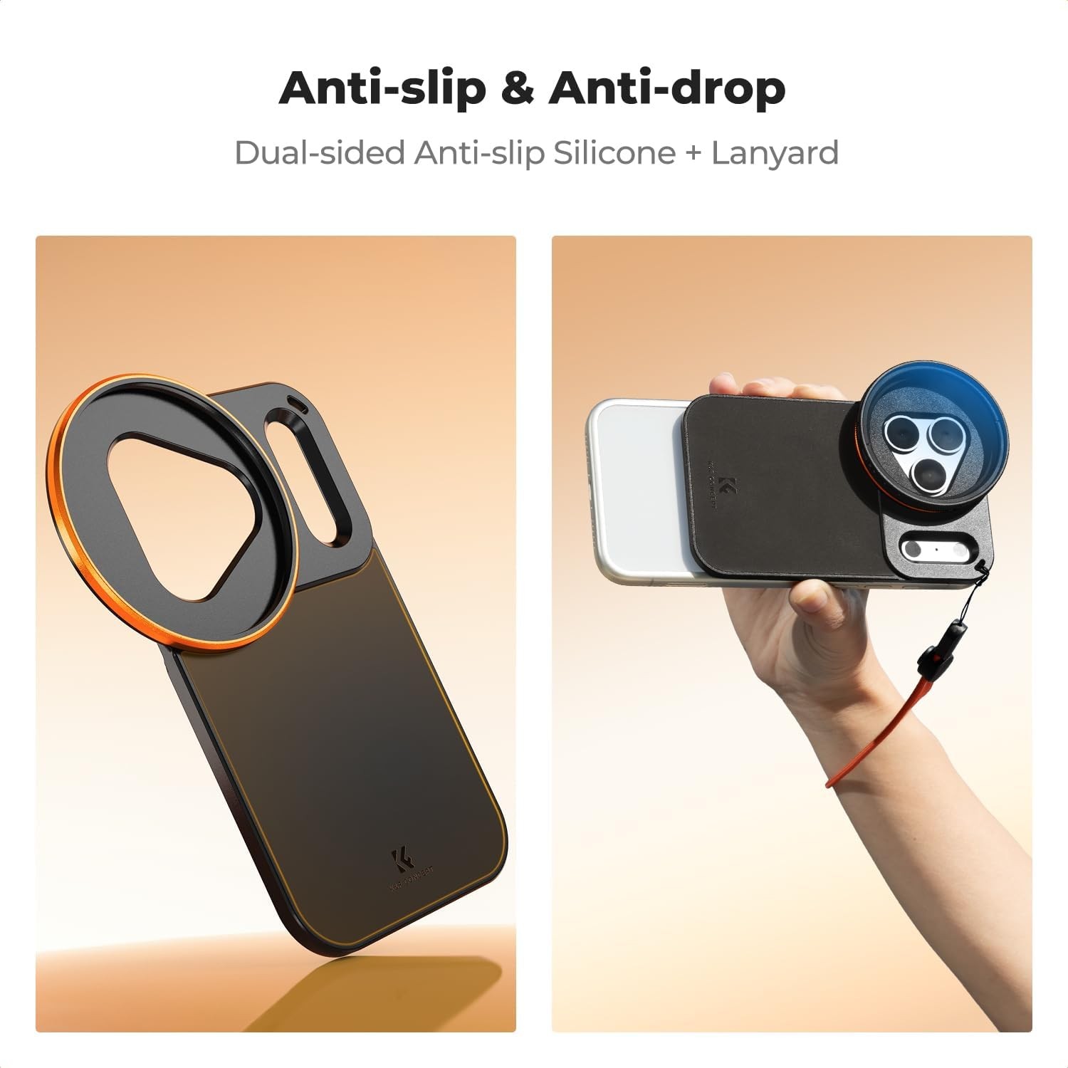 Vylepšite fotografovanie svojho iPhone 17 Pro Max s pomocou obojstranného magnetického držiaka filtra K&F 58 mm Screw-In Magsafe. Je navrhnutý špeciálne pre modul objektívu iPhone 17 Pro Max a disponuje trojuholníkovým výrezom pre objektív a obdĺžnikovým výrezom Deco, ktoré sa perfektne zhodujú s telom. Veľké otvory pre blesk a dutiny pre anténu zabraňujú úniku svetla a rušeniu signálu, čím zabezpečujú, že výkon fotoaparátu a blesku zostane nezmenený.