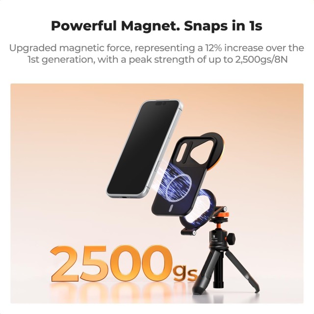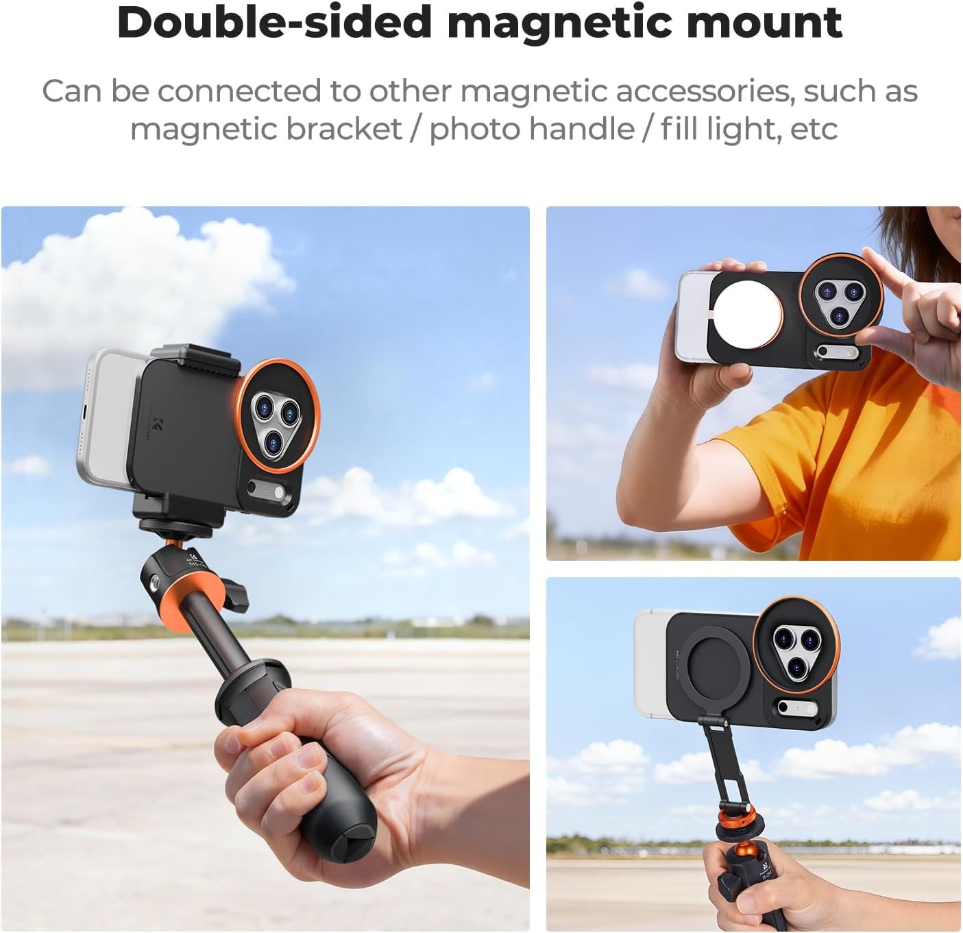 K&F Concept 58 mm skrutkovateľný obojstranný magnetický držiak filtra pre iPhone 17 Pro Max je presne vyrobený kovový držiak, ktorý umožňuje bezpečné používanie profesionálnych 58 mm závitových filtrov fotoaparátu. Vďaka ultra silným neodýmovým magnetom N52, konštrukcii z leteckého hliníka a plnej kompatibilite s objektívom, bleskom a signálom poskytuje stabilné, ochranné a rozširovateľné riešenie pre mobilnú fotografiu.