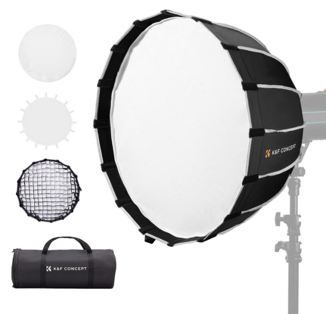Rýchloupínací svetelný box K&F 60CM 16 Soft Light Box s držiakom Bowens je nevyhnutným príslušenstvom pre fotografov a kameramanov, ktorí chcú dosiahnuť profesionálne výsledky osvetlenia. Tento šesťuholníkový parabolický softbox je navrhnutý tak, aby poskytoval vynikajúce rozptýlenie a kontrolu svetla a zabezpečil krásne a rovnomerné osvetlenie vašich objektov.