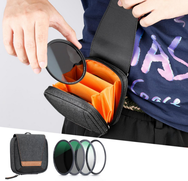 Súprava magnetických filtrov K&F 62 mm obsahuje filter MCUV, filter CPL, filter ND1000, magnetický adaptérový krúžok a puzdro na filter, ktoré ponúka vysokokvalitnú, vodotesnú ochranu objektívu proti poškriabaniu.
