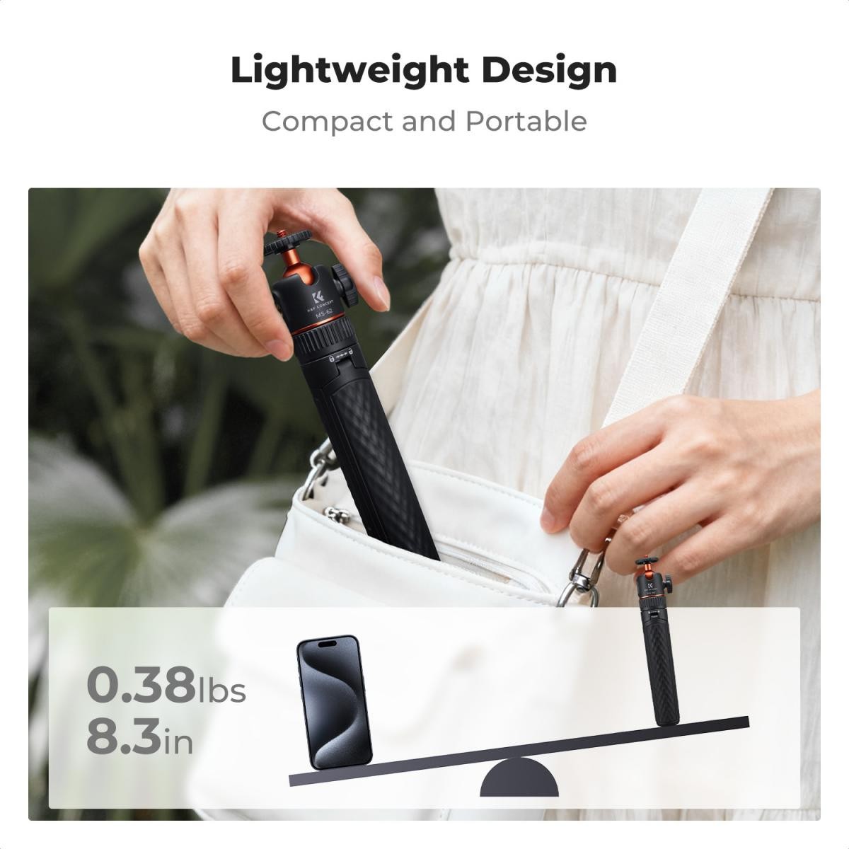 Stolný statív váži len175 g a po zložení meria len 21 cm. Je dostatočne kompaktný, aby sa vošiel do tašky, batohu alebo dokonca do vrecka, takže ho môžete používať kdekoľvek.