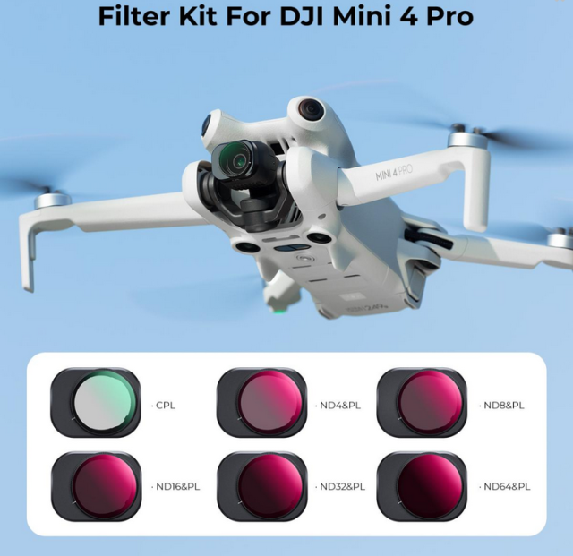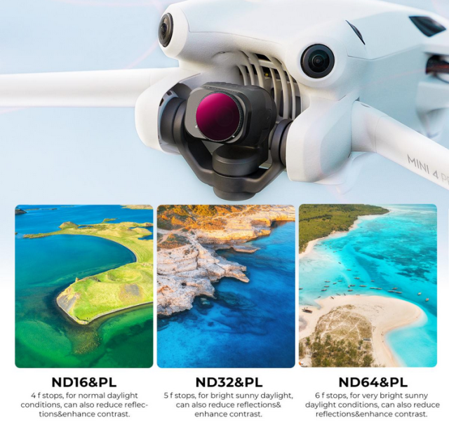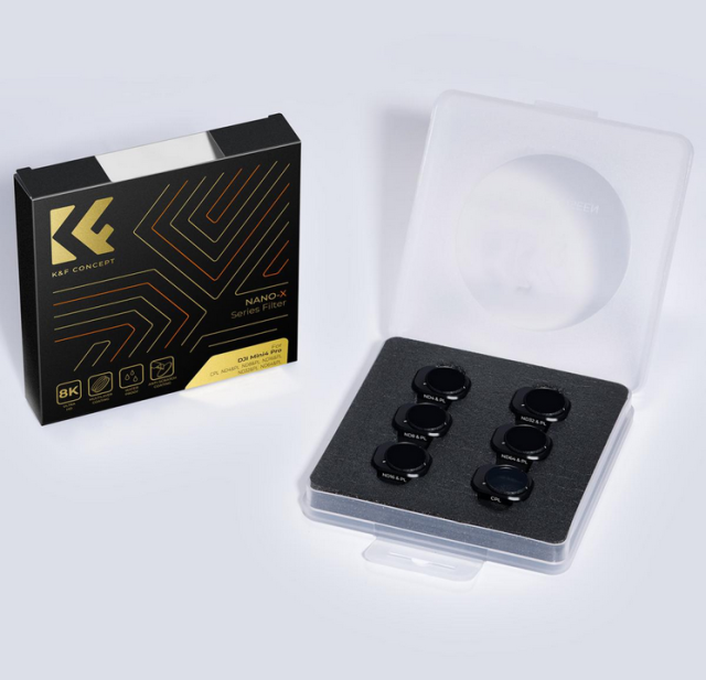 Súprava 6 ks filtrov K&F pre DJI Mini 4 Pro obsahuje filtre CPL, ND4&PL, ND8&PL, ND16&PL, ND32&PL a ND64&PL, ktoré poskytujú komplexnú kontrolu svetla a zlepšujú kvalitu obrazu. Tieto filtre sú vyrobené zo špičkového optického skla AGC s 28 vrstvami nanopovlakov a ponúkajú robustnú ochranu a čistotu s vysokým rozlíšením. Súprava kombinuje funkcie ND a CPL na zníženie odleskov, riadenie svetla a zvýšenie sýtosti farieb a kontrastu bez toho, aby bola ovplyvnená kalibrácia a vyváženie gimbalu.