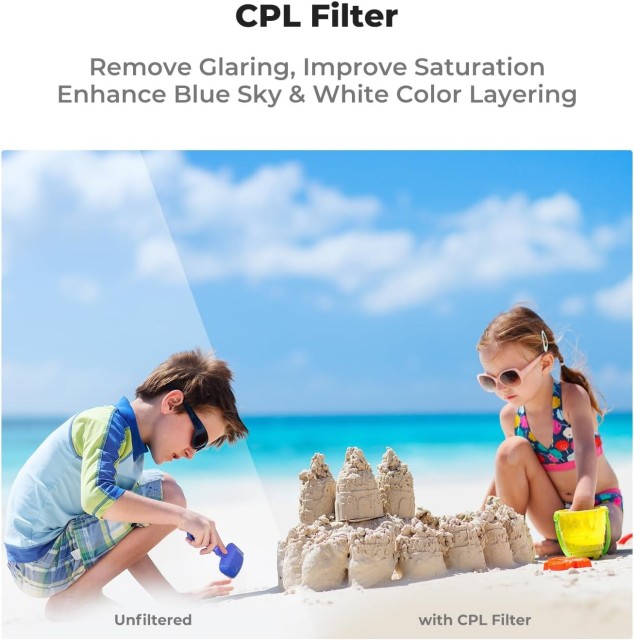 - 【Hybridný ND&PL filter 2 v 1】Jeden filter má funkcie redukcie svetla a polarizačného filtra, filtre ND16/PL, ND32/PL, ND64/PL a ND256/PL možno široko používať v čiastočne zamračených až silných svetelných podmienkach, pomáhajú redukovať svetlo o 4, 5, 6, resp. 8 stupňov, medzitým zabraňujú nežiaducim odrazom pochádzajúcim z nekovových materiálov, ako je voda, sklo atď. a prispievajú k zvýšeniu kontrastu a sýtosti modrej oblohy a bielych oblakov.