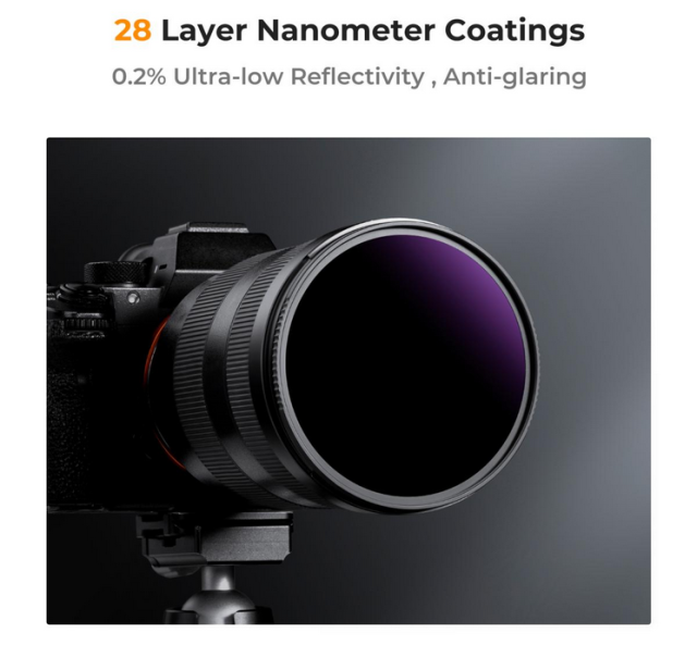 Filter K&F 72MM Nano-X Ultra ND1000000 je určený na špecializované fotografické potreby vrátane solárnej fotografie a dlhých expozičných záberov. Tento filter ponúka pôsobivú redukciu svetla o 20 stupňov, takže je ideálny na zachytenie zložitých detailov slnka alebo vytvorenie dramatických efektov rozmazania pohybu. Vyrobený z vysokokvalitného optického skla a vybavený 28-vrstvovou nanopovrchovou úpravou poskytuje vynikajúcu ochranu proti poškriabaniu, vode, oleju a prachu a zároveň minimalizuje odrazy a duchy. Hranatý krúžok filtra zaisťuje bezpečné uchopenie a jeho ultratenký, ľahký hliníkový rám pomáha predchádzať vinetácii. Je kompatibilný so všetkými objektívmi s predným závitom 72 mm.
