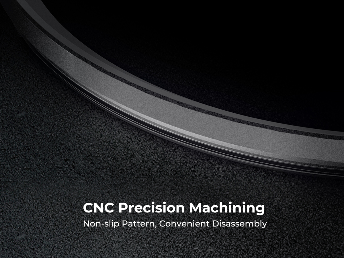 * 【Jednoduchá inštalácia a demontáž】 Povrch rámu je navrhnutý s lichobežníkovým vzorom CNC, aby sa zabezpečilo, že spotrebitelia môžu pri otáčaní zvýšiť trenie na veľkej ploche a kedykoľvek a kdekoľvek nainštalovať/odstrániť objektív a iné príslušenstvo