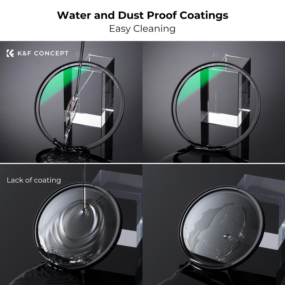 Magnetický filter sa dá "rýchlo nainštalovať a odstrániť" na rozdiel od závitového filtra, ktorý sa musí otáčať; magnetický filter sa dá nainštalovať za jednu sekundu a závitový filter potrebuje najmenej 6 sekúnd. 28-vrstvová nanopovrchová úprava s antireflexnou zelenou fóliou, ktorá dokáže účinne znížiť odrazivosť povrchu filtra pri filtrovaní ultrafialového žiarenia, výrazne zlepšiť priepustnosť svetla a vyvážiť farbu, odolnosť proti poškriabaniu a oleju.