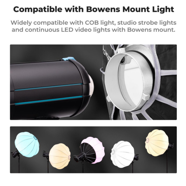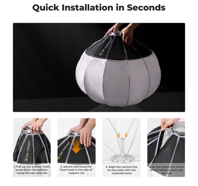Mäkký svetelný box K&F 85CM Lantern je určený pre fotografov a filmárov, ktorí potrebujú všestranné a efektívne riešenia osvetlenia. Jeho sférický dizajn zabezpečuje 360° všesmerové mäkké svetlo, vďaka čomu je ideálny na použitie v štúdiu, pretože rovnomerne šíri svetlo s uhlom vyžarovania 270°. Tento lampášový softbox je ideálny na vytváranie mäkkého, rovnomerného osvetlenia na veľkej ploche pomocou jediného zdroja svetla.