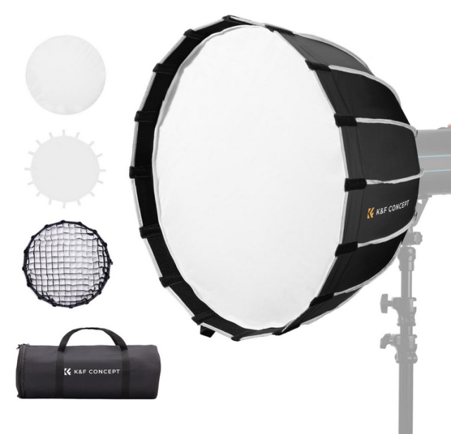 Rýchloupínací šesťuholníkový softbox K&F 90 cm s držiakom Bowens je navrhnutý tak, aby vylepšil vašu fotografiu a videografiu vďaka plynulému a rovnomernému rozloženiu svetla. Tento hlboký parabolický softbox zmierňuje ostré odlesky, eliminuje nežiaduce tiene a zachováva vernú reprodukciu farieb. Jeho rýchle uvoľnenie a skladacia konštrukcia so zliatinovým úchytom šetria čas a energiu, takže je efektívnejší ako tradičné softboxy. Vďaka 16 odolným a pružným rebrám si zachováva dokonalý tvar a odolnosť aj po intenzívnom používaní. Dodávaná voštinová mriežka a difúzory umožňujú presné ovládanie svetla a tvorivé efekty, takže je ideálny na portréty, produktovú fotografiu, fotografovanie krásy a módy, svadby a firemné snímky hlavy.