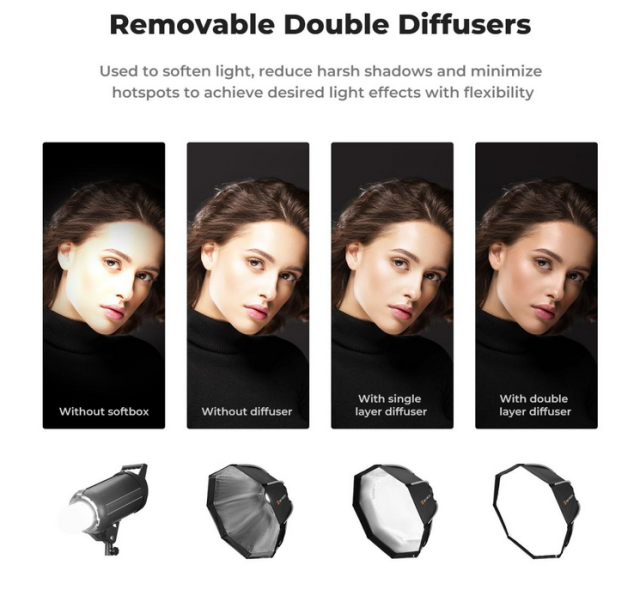 Vylepšite svoje portréty, svadby, módnu fotografiu, nahrávanie videa, živé vysielanie a rozhovory pomocou tohto 35-palcového / 90 cm osemhranného softboxu. Je ľahký a ľahko sa používa a poskytuje rovnomerný, verný odraz svetla.
