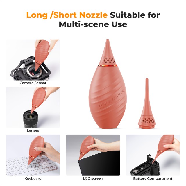 K&F Advanced Silicone Air Blower (ružový): Dvojitá dýza s dlhou a krátkou dýzou na presné čistenie. Vyrobený z prvotriedneho silikónu s povrchovou úpravou s dotykovým olejom.