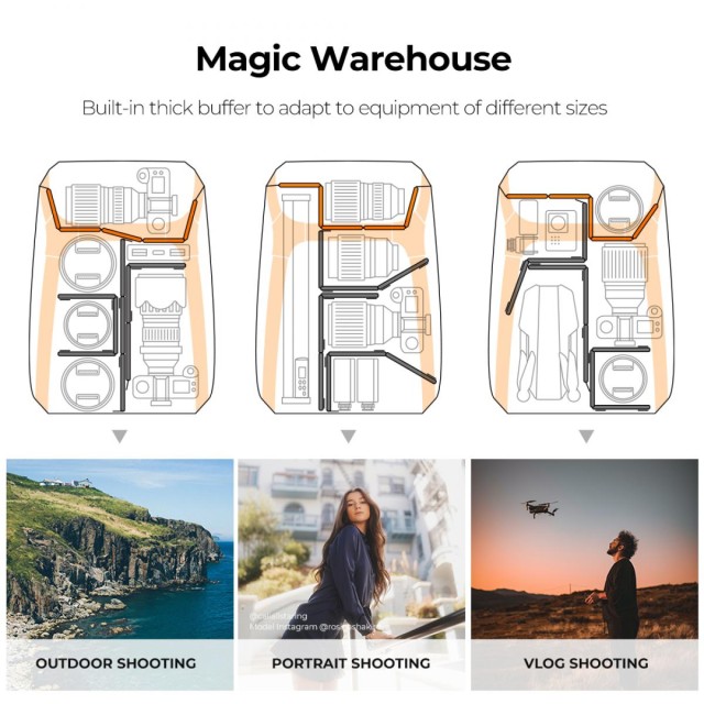 - * 【Pripojiteľné priehradky a rýchly prístup】Vyberateľné prispôsobiteľné polstrované priehradky môžu upraviť priestor podľa veľkosti fotoaparátu a typu príslušenstva, ktoré prenášate, aby ste lepšie ochránili fotoaparát a príslušenstvo.
