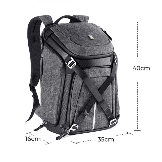 Batoh K&F Concept Alpha 25L s veľkou kapacitou. Rozmery: 17,3" * 11,6" * 9,4". Do batohu sa zmestia 2 fotoaparáty + 4 objektívy + 15,6" notebook (Independent) + 12,9" tablet (nezávislý)+ statív a ďalšie potrebné veci. Podvesená vrchná vrstva môže pojať cestovné potreby, ako je oblečenie, uteráky alebo iné osobné veci.