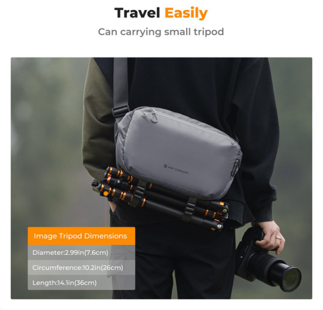 Taška K&F Alpha Sling Bag 10L (Grey) spája praktickosť, pohodlie a bezpečnosť v elegantnom, multifunkčnom dizajne. Táto taška s objemom 10 l je kompaktná a zároveň dostatočne priestranná na to, aby sa do nej zmestil jeden fotoaparát a dva objektívy spolu so základným príslušenstvom a osobnými vecami.