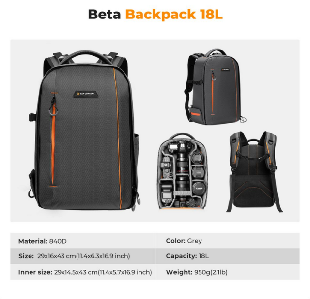 Batoh K&F Beta Backpack 18L v tmavosivej farbe je ľahká, prispôsobiteľná taška na fotoaparát určená pre fotografov na cestách, ktorá pojme základné vybavenie a zabezpečí pohodlie počas dlhého fotografovania.