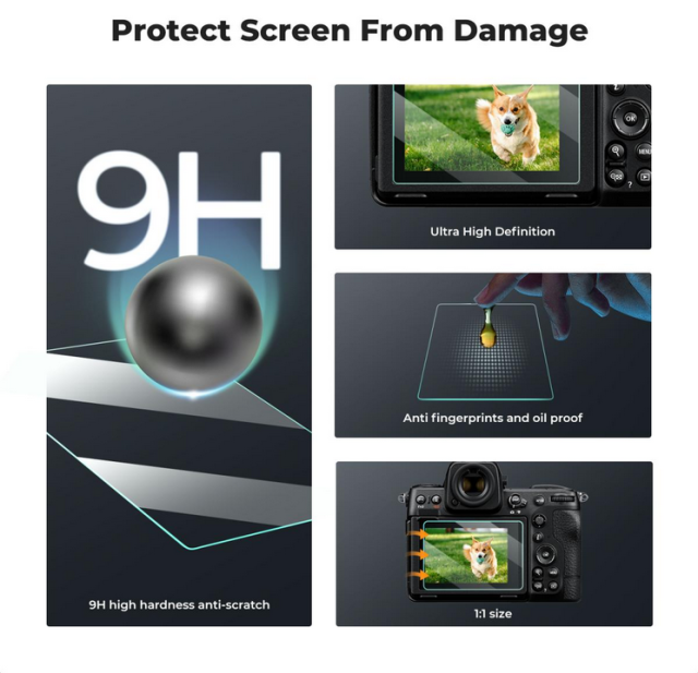 Táto súprava ochranných krytov obrazovky fotoaparátu K&F je určená pre fotoaparáty Nikon Z9 a Z8 a obsahuje 3 ochranné kryty obrazovky, 3 horné ochranné kryty obrazovky a vysávaciu čistiacu handričku.