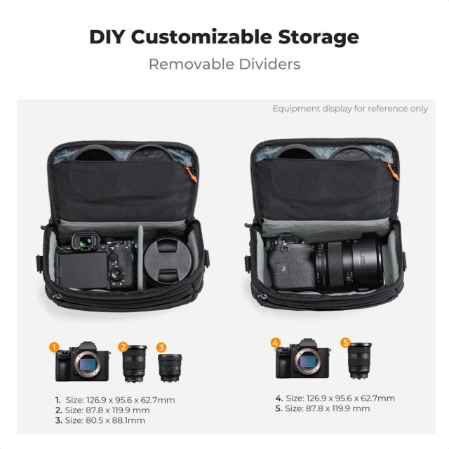 Táto ľahká taška cez rameno (764 g) je navrhnutá pre pouličnú fotografiu a cestovanie a pohodlne pojme 1 telo digitálnej zrkadlovky/bezzrkadlovky a 2 objektívy. Ideálna pre fotografov, ktorí potrebujú kompaktnú tašku na cestovanie.
