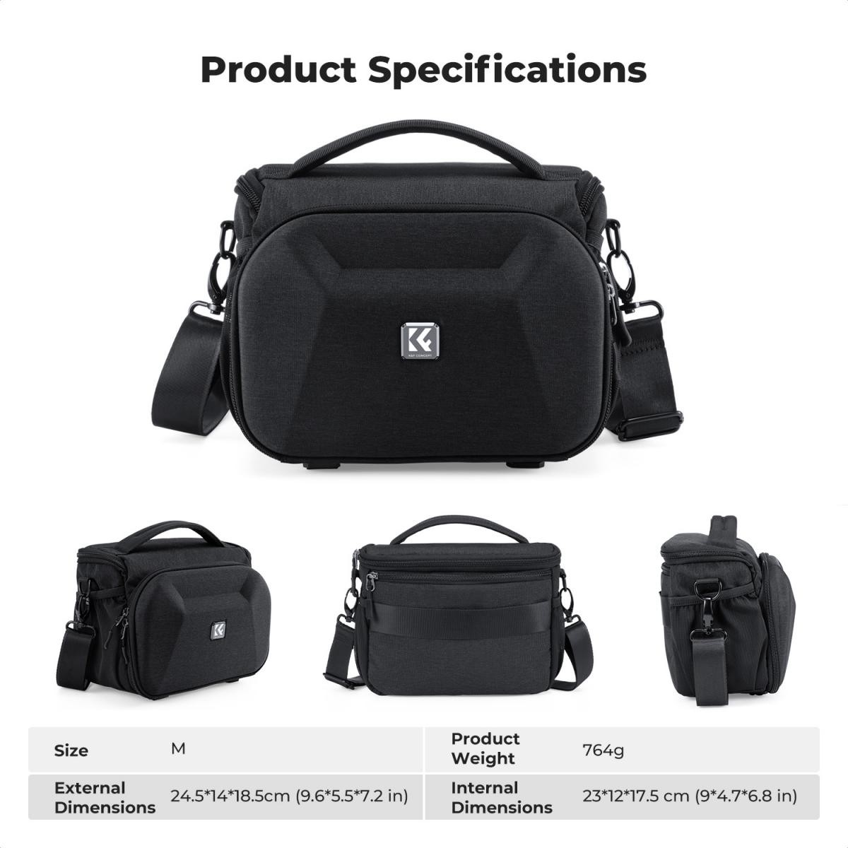 K&F Concept Camera Sling Bag – nepremokavá taška cez rameno pre digitálne zrkadlovky/bezzrkadlovky, s tvrdou škrupinou a držiakom na statív. Veľkosť: M.