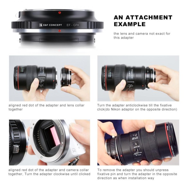 Adaptér objektívov K&F Canon EOS EF na fotoaparát Fuji GFX umožňuje fotografom nasadiť objektívy Canon EF na strednoformátové telá fotoaparátov Fujifilm GFX. Tento adaptér je ideálny pre používateľov, ktorí chcú využiť širokú škálu objektívov Canon EF a zároveň si užívať veľký senzor a vysokú kvalitu obrazu systému GFX.