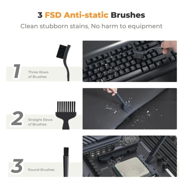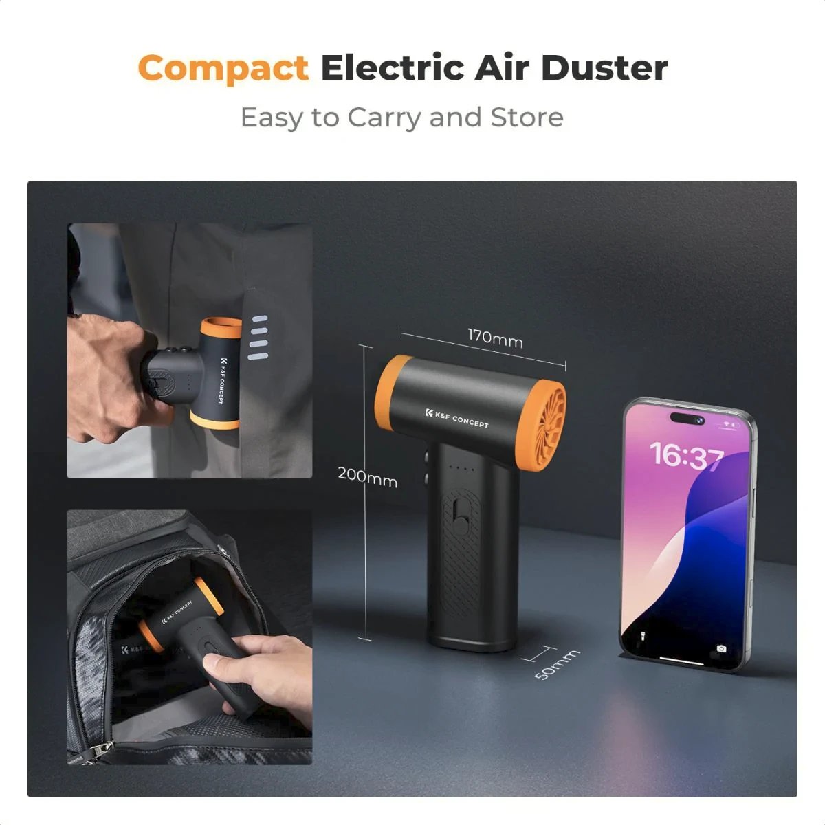 Bezkefový stlačený vzduchový čistič K&F Concept 12 v 1 je výkonný, ekologický čistiaci nástroj určený na bezpečné a efektívne odstraňovanie prachu z fotoaparátov, objektívov, senzorov, elektroniky, klávesníc a iného citlivého vybavenia. Vďaka odolnému bezkefovému motoru, viacerým nástavcom trysiek a opakovane použiteľnej konštrukcii nahrádza jednorazové vzduchové spreje a zaisťuje dlhodobú a spoľahlivú údržbu.