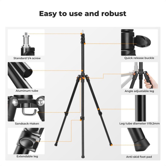 K&F CONCEPT 2 ks 2,0 m hliníkové skladacie svetelné stojany so skrutkami 1/4" a taškou – pre video a štúdiové osvetlenie. Vyrobené z ľahkej hliníkovej zliatiny, vážia len 870 g a v zloženom stave majú rozmery 43,2 × 9 cm – ľahko sa zmestia do batohov alebo 20" kufrov, sú ideálne na cestovanie a fotografovanie v exteriéri.