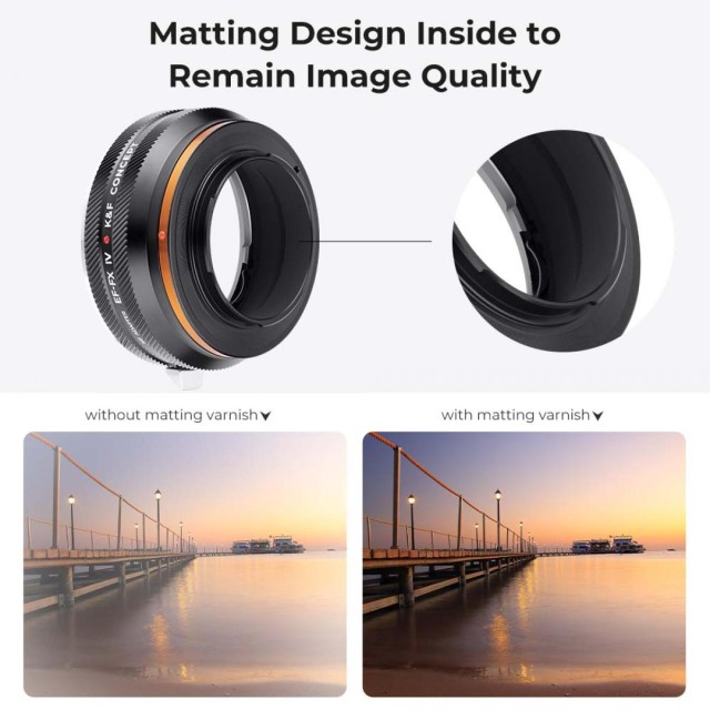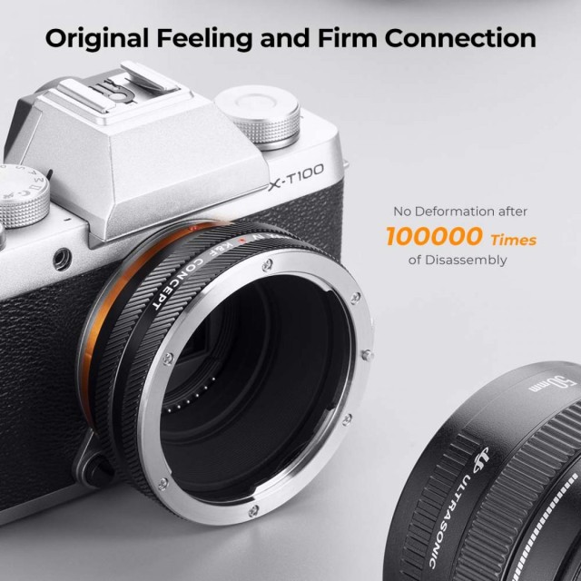 Odomknite svet možností s týmto adaptérom na objektívy navrhnutým pre objektívy Canon série EF na bezproblémové nasadenie na telá fotoaparátov Fujifilm série X. Vyrobený z vysokokvalitnej zliatiny medi a hliníka, precízne spracovanie zaručuje odolnosť, pohodlnú manipuláciu a bezproblémovú demontáž a montáž. Vychutnajte si plné manuálne ovládanie vďaka stabilnej konštrukcii, ktorá zabraňuje skĺznutiu a ponúka bezpečné pripojenie. Logo s červenou bodkou označuje presné zarovnanie, vďaka čomu je inštalácia a demontáž hračkou. Kĺbový krúžok a bajonet sú starostlivo skombinované, čo zaručuje pevné a hladké uchytenie bez akéhokoľvek uvoľnenia. Pozdvihnite svoje fotografické zážitky vďaka tomuto spoľahlivému a všestrannému adaptéru na objektív.