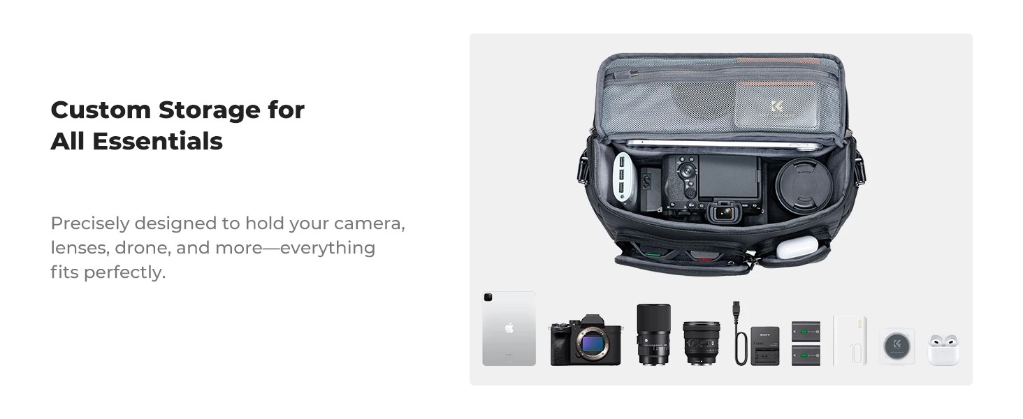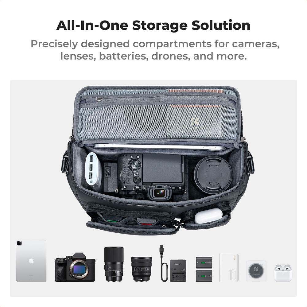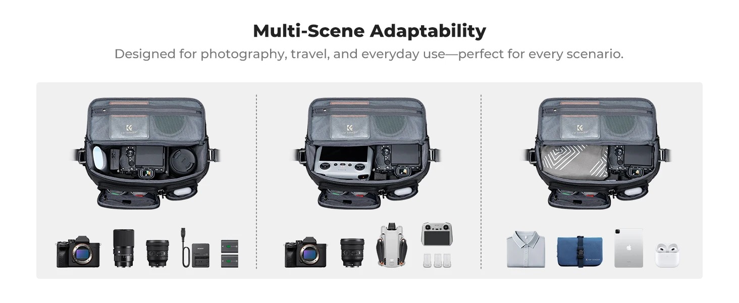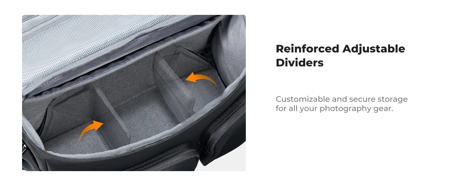 • VŠESTRANNÉ POUŽITIE: Táto taška na fotoaparát cez rameno je vybavená 1 odnímateľnou polstrovanou priehradkou pre personalizované uloženie. Udržujte fotoaparát a ostatné veci oddelené a chránené, tiež vám umožňuje prispôsobiť hlavný priestor pre rôzne veľkosti fotoaparátu. Po odstránení vnútorných priehradiek sa dá ľahko premeniť z tašky nadigitálny fotoaparát na štýlovú každodennú tašku cez rameno.