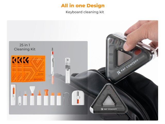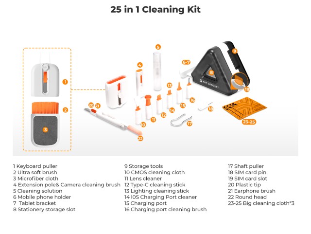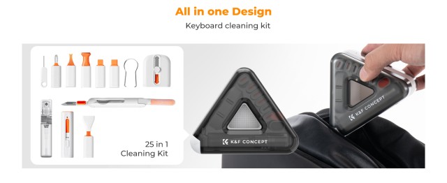 K&F Concept 25-in-1 Keyboard Cleaning Kit Laptop Cleaner - multifunkčná sada elektronického špecializovaného príslušenstva na čistenie mobilného telefónu, tabletu, PC, fotoaparátu, klávesnice, slúchadiel - držiak na telefón, tablet