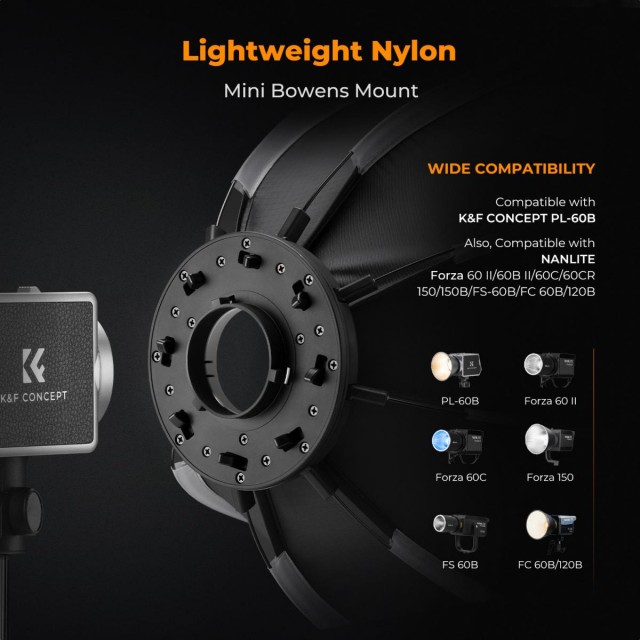 Je špeciálne navrhnutý pre svetlo PL-60B COB, na inštaláciu nevyžaduje žiadny ďalší adaptér. Je kompatibilný aj so svetlami Nanguang Forza 60 II/60B II/60C/60CR/150/150B, FS-60B a FC 60B/120B.