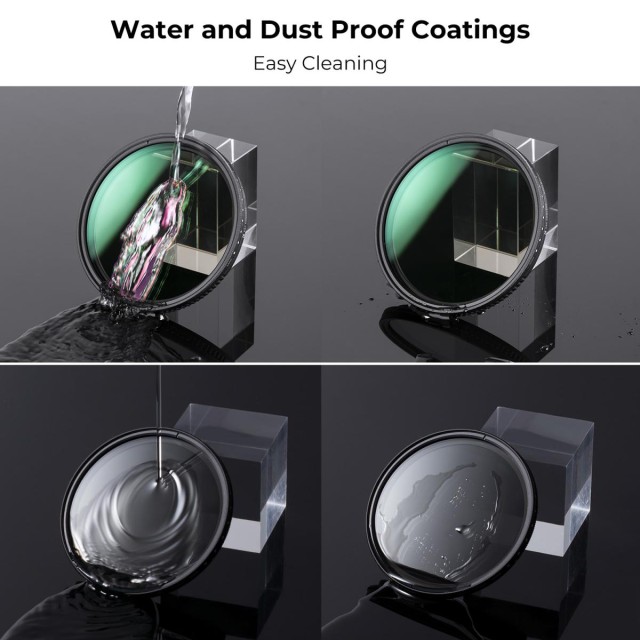 Variabilný ND filter K&F Concept 49 mm ND2–ND400 poskytuje nastaviteľné zníženie svetla o 1–9 stupňov pre dlhú expozíciu a fotografovanie s rozmazaným pohybom v rôznych svetelných podmienkach. Je vyrobený z optického skla HD AGC a má 24 vrstiev nanovrstvy, vďaka čomu ponúka výnimočnú čistotu, znížené odrazy a vysokú odolnosť voči vode, prachu a škrabancom. Jeho ultratenký rám s hrúbkou 7,4 mm zaručuje kompatibilitu so širokouhlými objektívmi, zatiaľ čo CNC prstenec zabezpečuje plynulé a presné nastavenie.