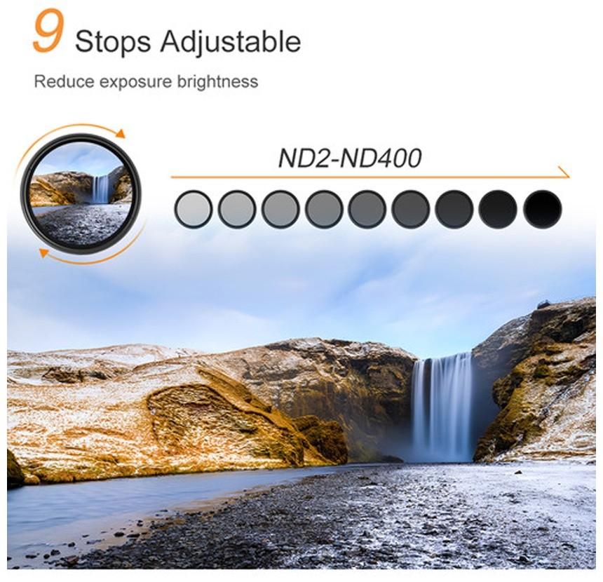 Dosiahnite dokonalú kontrolu expozície s filtrom K&F CONCEPT 58 mm True Color Variable ND2–ND400. Tento ultratenký neutrálny filter je vyrobený z vysoko kvalitného optického skla s antireflexnou vrstvou a umožňuje fotografom plynulo nastavovať prísun svetla od ND2 do ND400, čo ho robí ideálnym pre zachytávanie dlhých expozícií, kontrolu hĺbky ostrosti alebo fotografovanie v jasných podmienkach. Jeho priemer 58 mm sa hodí na väčšinu štandardných objektívov a odolná konštrukcia zaisťuje konzistentný výkon bez farebných posunov alebo zhoršenia kvality obrazu. Kompaktný a ľahký, je ľahko prenosný a použiteľný, či už fotografujete krajiny, portréty alebo kreatívne efekty.