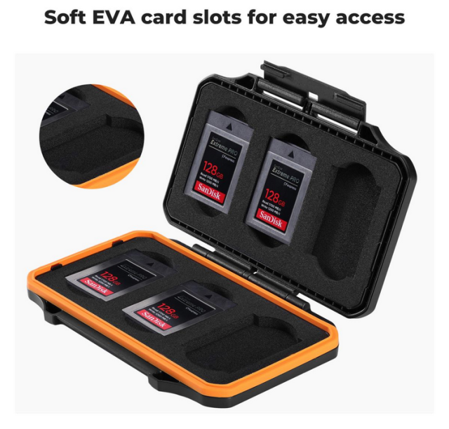 - Kompaktný dizajn s veľkou kapacitou: Tento držiak na karty s rozmermi 127 x 80 x 19,4 mm (5 x 3,1 x 0,7 palca) pojme až 6 pamäťových kariet XQD alebo 6 pamäťových kariet CFexpress typu B, čím poskytuje dostatok úložného priestoru v prenosnej forme.