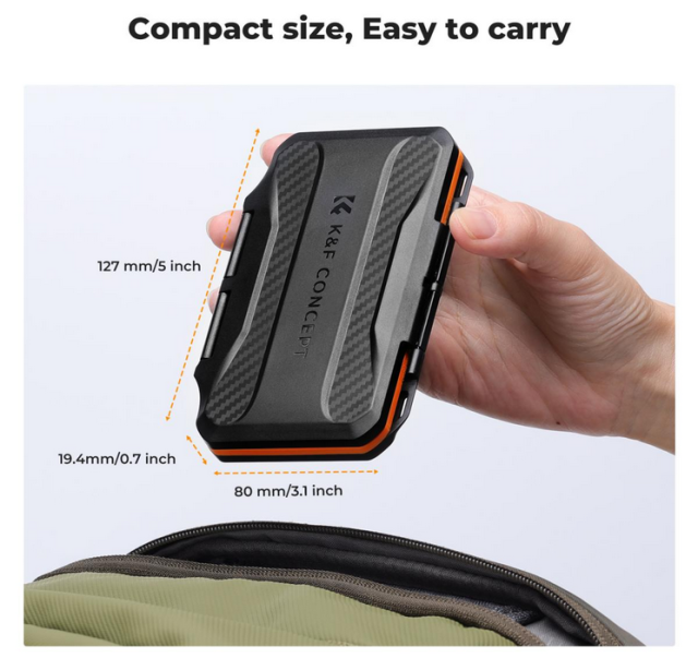 Držiak na pamäťové karty K&F Concept 6-Slot XQD & CFexpress Type-B ponúka dokonalé riešenie na bezpečné a prehľadné uloženie pamäťových kariet na cestách.