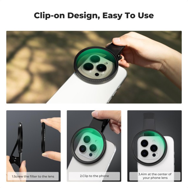 67mm Clip-on CPL&Black Mist 1/4 2-in-1 Phone Camera Lens Filter Kit Použiteľný pre všetky modely mobilných telefónov.