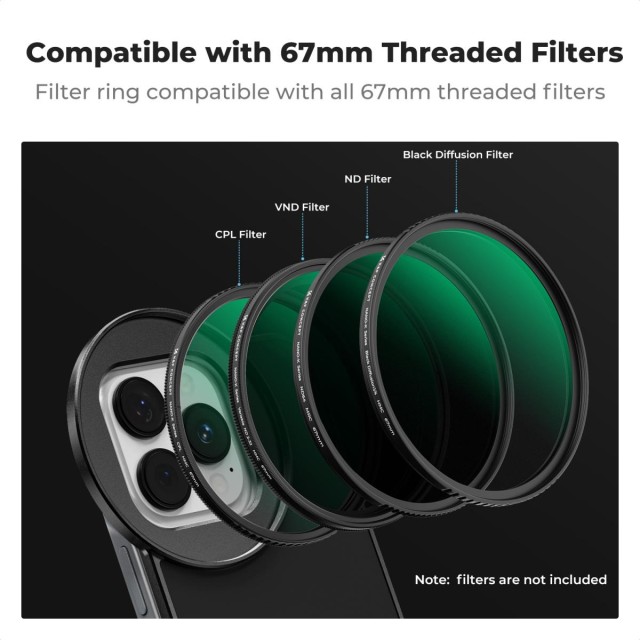 Adaptér magnetického držiaka objektívu K&F Concept 6,1 palca prináša revolúciu vo fotografovaní s iPhoneom, keďže sa magneticky pripája k modelom ako iPhone 16/16 Pro, 15/15 Pro, 14/14 Pro, 13/13 Pro a 12/12 Pro, čím umožňuje plynulé používanie filtrov so závitom 67 mm (CPL, ND, UV, Black Diffusion, star atď.—nie sú súčasťou balenia) bez obmedzenia…