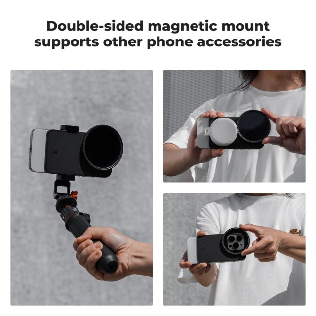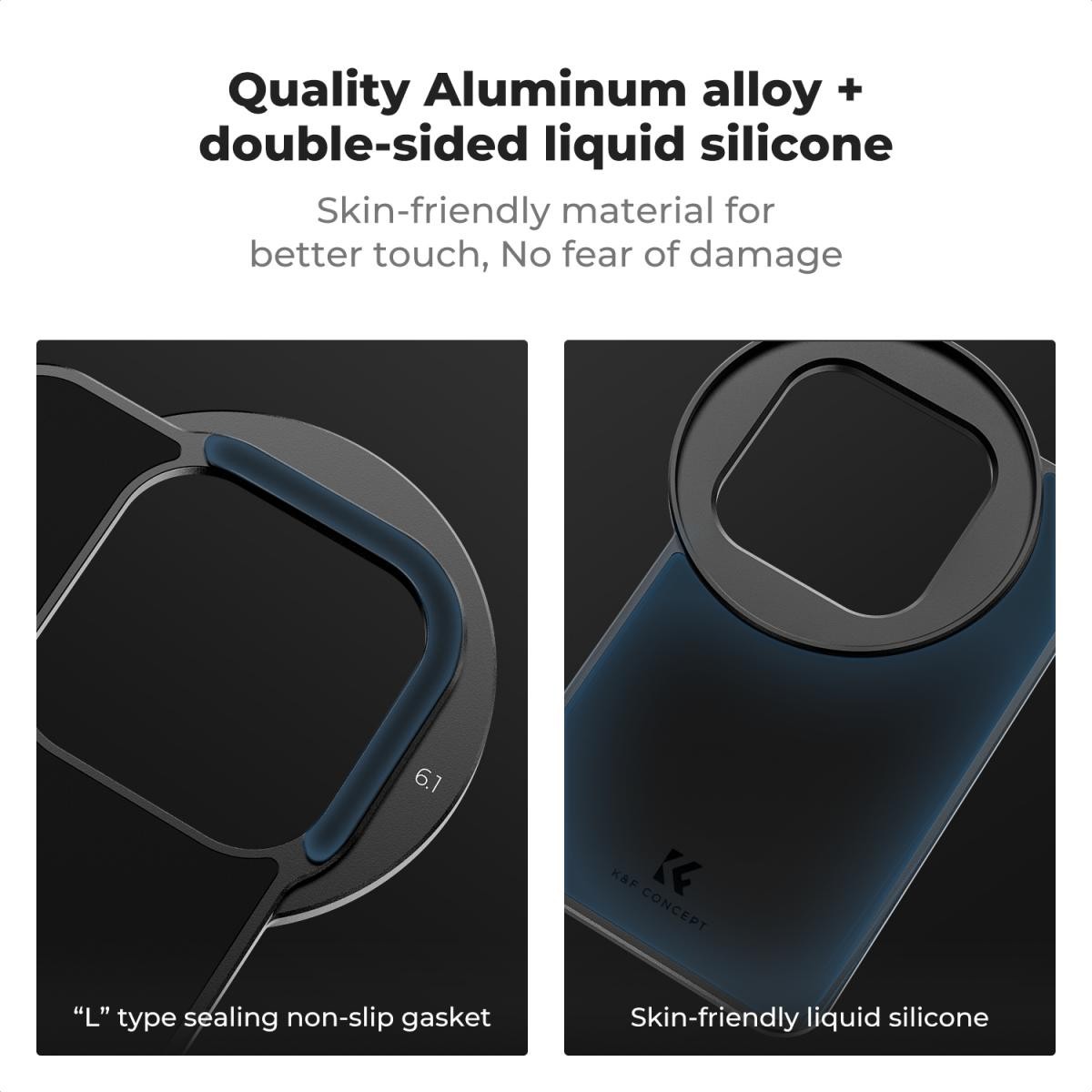 Adaptér magnetického držiaka objektívu K&F Concept 6,1 palca prináša revolúciu vo fotografovaní s iPhoneom, keďže sa magneticky pripája k modelom ako iPhone 16/16 Pro, 15/15 Pro, 14/14 Pro, 13/13 Pro a 12/12 Pro, čím umožňuje plynulé používanie filtrov so závitom 67 mm (CPL, ND, UV, Black Diffusion, star atď.—nie sú súčasťou balenia) bez obmedzenia výhľadu alebo kompatibility magnetických filtrov. Jeho obojstranný rozširovateľný magnetický dizajn umožňuje stohovanie príslušenstva, ako sú kruhové svetlá alebo dodatočné držiaky na oboch stranách, pre univerzálne nastavenia, zatiaľ čo protišmyková rukoväť v tvare L, bezproblémové tesnenie okrajov proti úniku svetla a mäkká tekutá silikónová vrstva zaisťujú manipuláciu bez odtlačkov prstov a pevnú stabilitu pri každodennom fotografovaní.