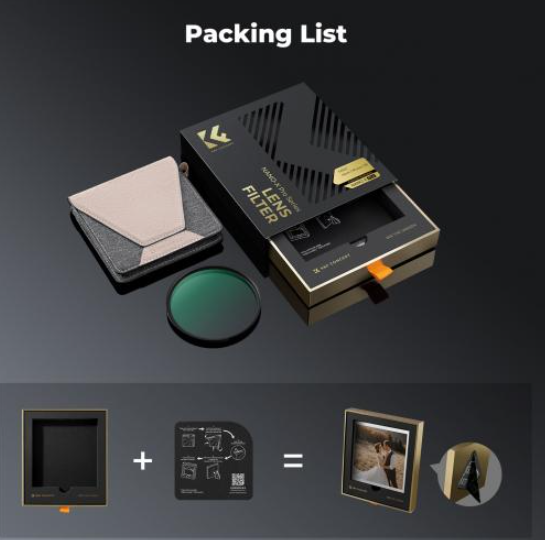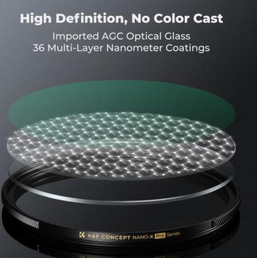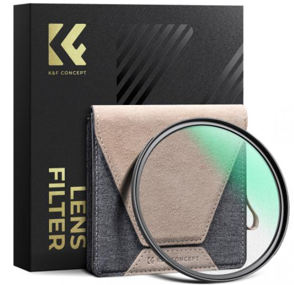 Filter K&F Concept 77 mm Black Mist 1/8 (séria Nano-X Pro) má mosadzný CNC rám, ultra nízku odrazivosť 0,15 % a 36-vrstvovú nano ochranu na optickom skle AGC pre jemné filmové rozptýlenie. Minimalizuje duchov, vyhladzuje textúru pokožky a dodáva portrétom a nočným záberom snový lesk, pričom zachováva detaily, a je odolný voči vode, oleju a poškriabaniu, čo zaručuje trvalý výkon a ľahké čistenie.