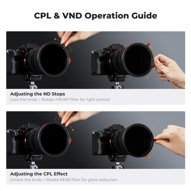 Vďaka magnetickému dizajnu s rýchlou výmenou sa filtre pripájajú okamžite bez zdĺhavého navliekania – ideálne pre rýchle fotografovanie alebo časté úpravy. Filter ND3–32 ponúka plynulé a presné zmeny hustoty vďaka vstavaným koncovým dorazom a tichému, plynulému otáčaniu vďaka prémiovej teflónovej konštrukcii – ideálny pre filmárov používajúcich smerové mikrofóny. CPL zvyšuje kontrast, eliminuje odrazy a zosilňuje farby, zatiaľ čo filter Black Mist 1/4 poskytuje filmovú jemnosť, žiarivé odlesky a prirodzené odtiene pleti.
