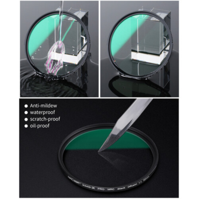 Vytvorte na svojich snímkach snový efekt pomocou tohto filtra od spoločnosti K&F Concept. Dizajn čiernej hmly má silu 1/2, ktorá pomôže zjemniť pleť na portrétoch a vytvoriť halo efekt okolo svetiel. Má tiež vysokú priepustnosť s minimálnym vplyvom na vašu expozíciu.