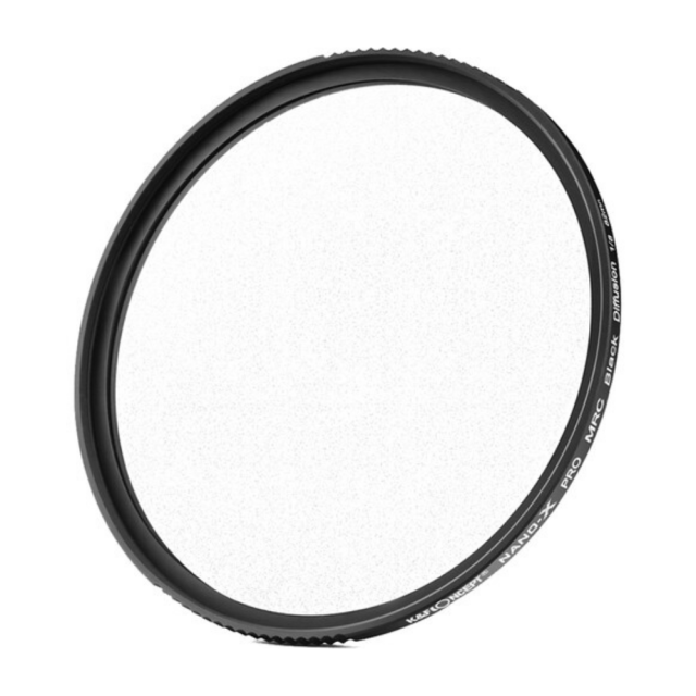 Difúzny filter K&F Concept 1/8 čiernej farby zjemňuje obraz alebo video a kontroluje odlesky svetiel, čím zjemňuje pleť alebo póry.