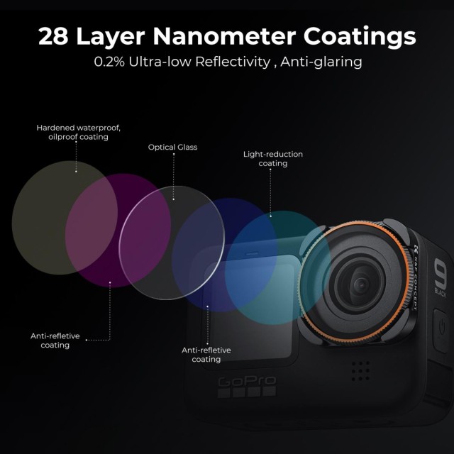 Optický sklenený filter AGC má 28 vrstiev nanopovlaku, ktorý minimalizuje odrazy a odlesky a zároveň zvyšuje kvalitu obrazu. Je vodotesný a odolný proti znečisteniu, s bajonetovou konštrukciou rámu na jednoduchú inštaláciu a demontáž. Prísne testovanie hmotnosti zaručuje, že neovplyvňuje zaťaženie gimbalu kamery, a začiernený povrch minimalizuje odrazy, čím sa znižuje vplyv na obraz.
