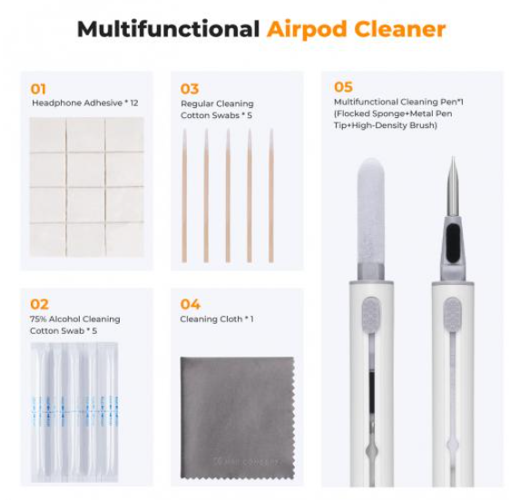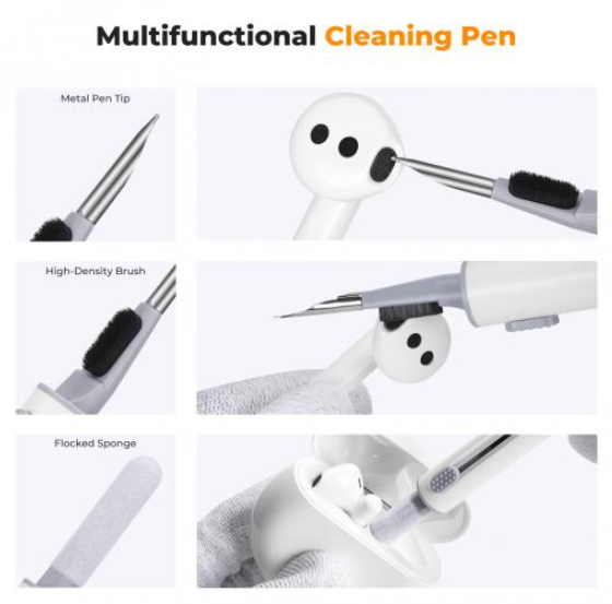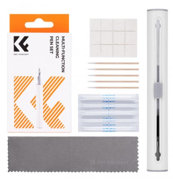 Súprava K&F Concept Airpod Cleaner Kit je multifunkčné čistiace pero 3 v 1 s mäkkou kefkou, flokovanou špongiou, pamäťovou bavlnenou tyčinkou, lepiacou páskou, alkoholovým tampónom a mikrovláknovou utierkou, určené na dôkladnú údržbu Bluetooth slúchadiel. Odstraňuje mastnotu, prach, škvrny a baktérie z povrchov, zvukových výstupov a priehradiek, čím obnovuje hygienu a lesk AirPods alebo podobných zariadení.