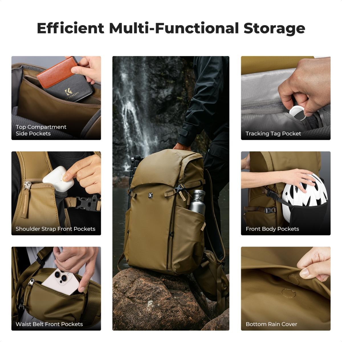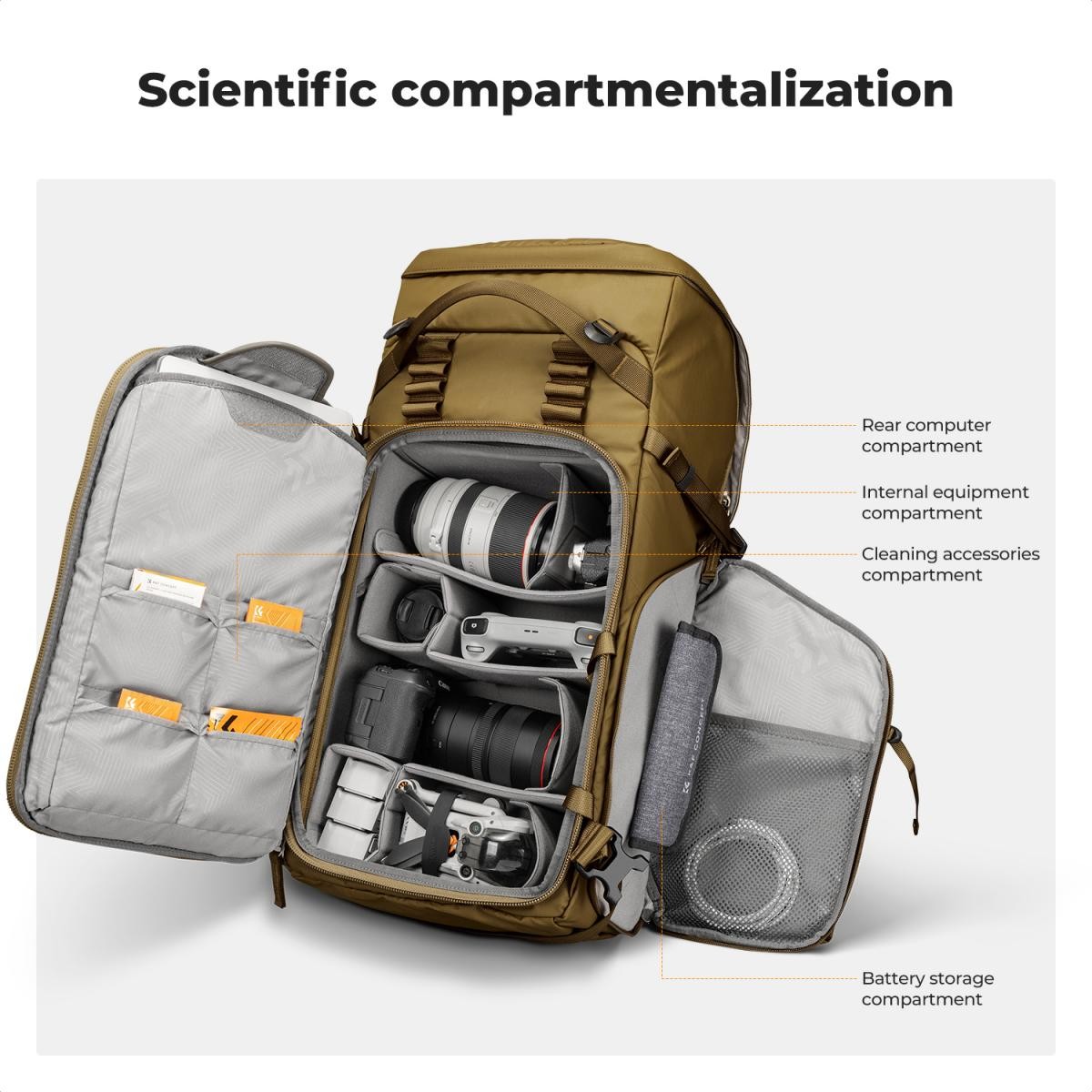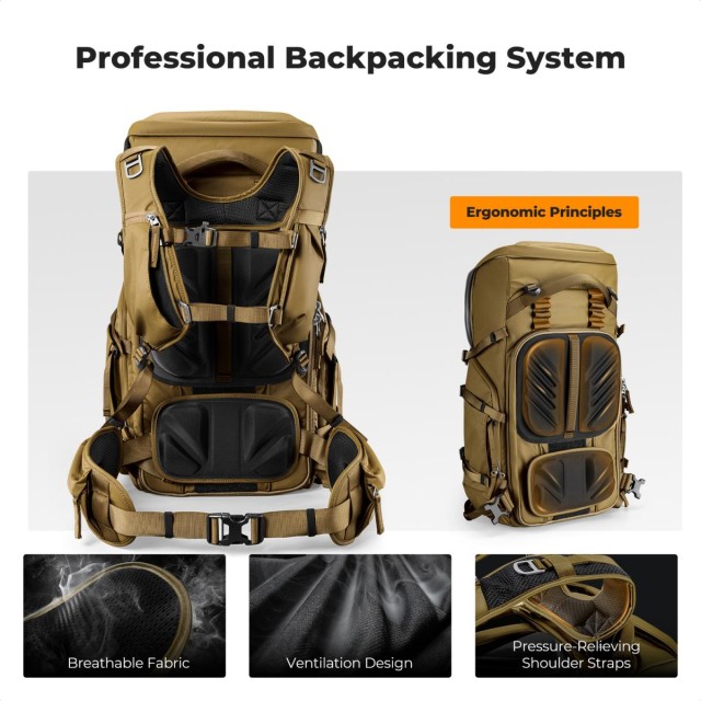 K&F CONCEPT Backpack 40L Star Wander05 (Champagne) je profesionálny outdoorový fotografický a trekingový batoh navrhnutý pre pohodlie, ochranu a rýchly prístup. Vďaka ergonomickému trojnásobne nastaviteľnému systému popruhov, materiálom odolným voči poveternostným vplyvom a modulárnej odnímateľnej vložke na fotoaparát je tento batoh ideálny pre fotografov a dobrodruhov, ktorí nosia ťažkú výbavu na dlhé vzdialenosti.