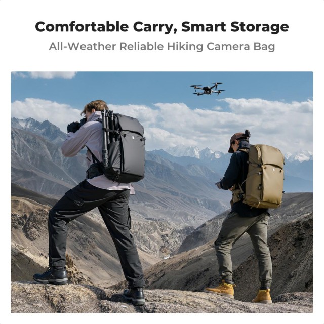 Batoh je vyrobený z vysoko hustého, odolného proti oderu a vodu odpudzujúceho materiálu a poskytuje spoľahlivú ochranu proti vlhkosti, rose a ľahkému dažďu za každého počasia, čím chráni cenné fotografické vybavenie v nepredvídateľných vonkajších podmienkach. Modulárna odnímateľná vložka na fotoaparát umožňuje ľahko premeniť batoh z plnohodnotného fotografického batohu na štandardný turistický alebo cestovný batoh, čím ponúka vynikajúcu univerzálnosť.