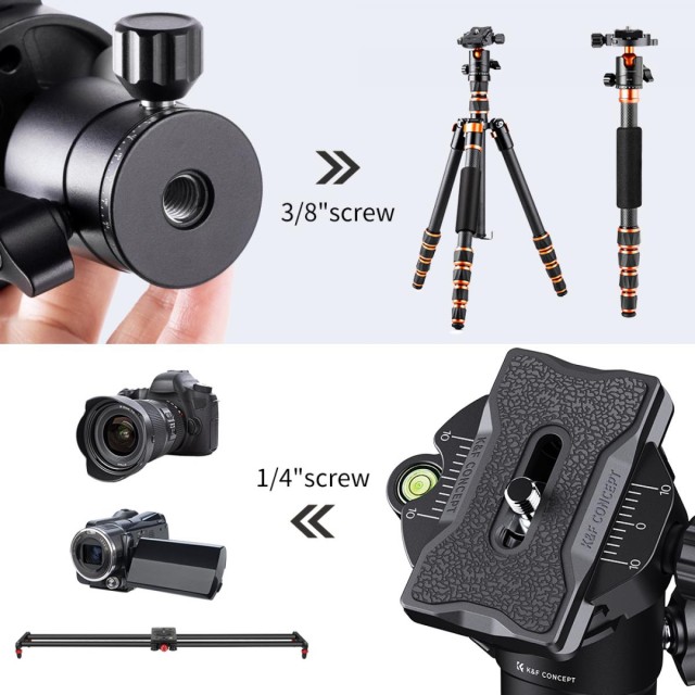 Guľová hlava statívu fotoaparátu K&F Concept s 1/4-palcovou rýchloupínacou doštičkou a vodováhou, nosnosť 8 kg, pre statív, monopod, slider fotoaparátu, zrkadlovku