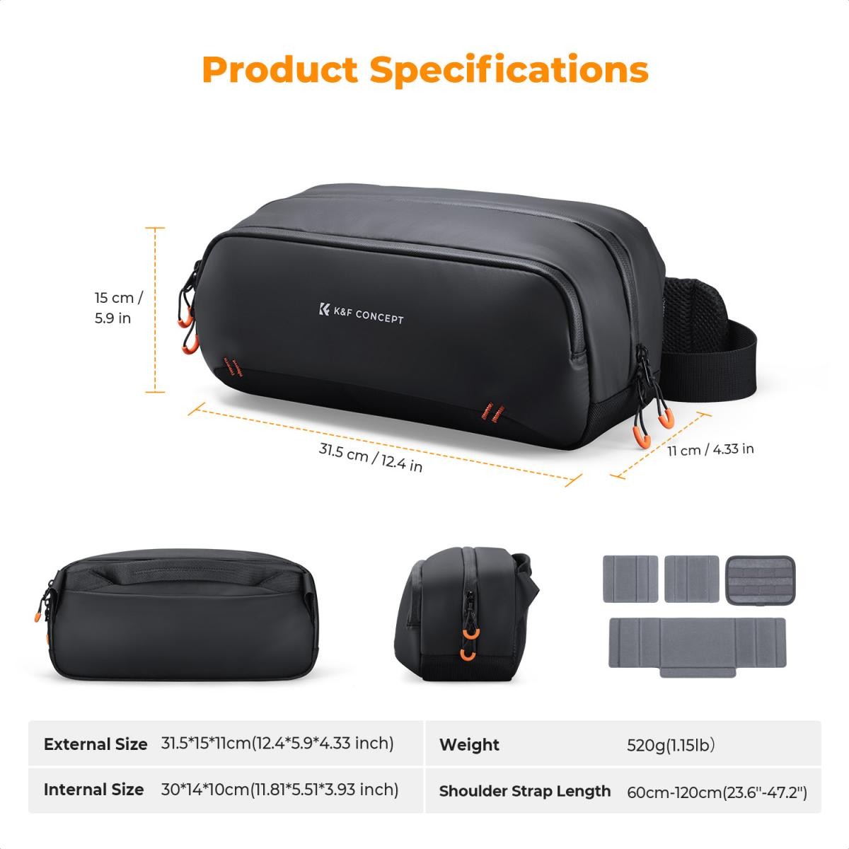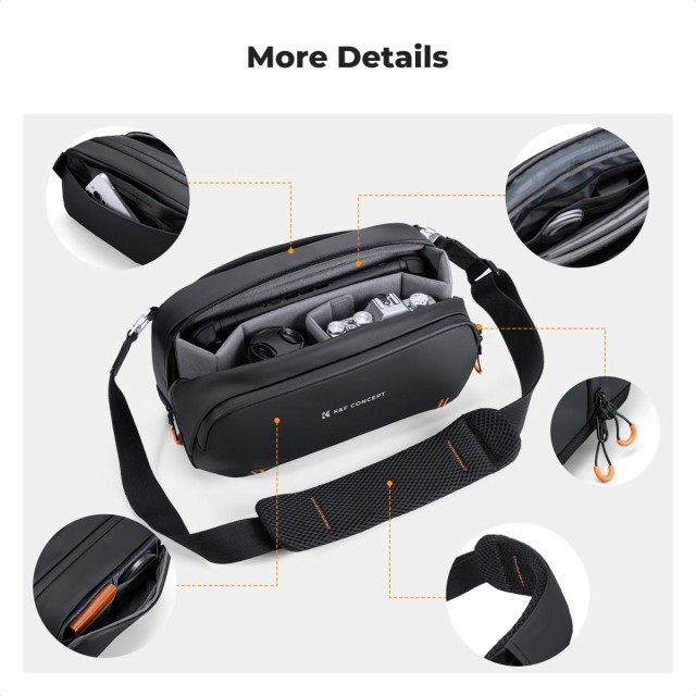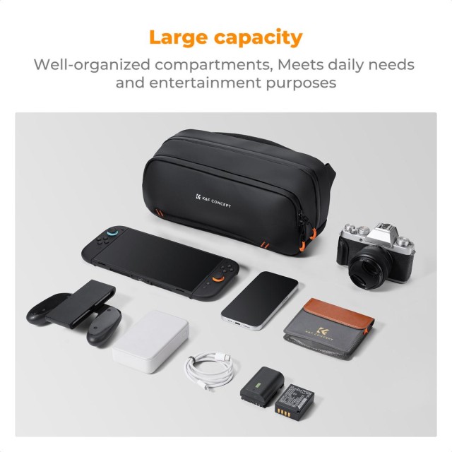 Digitálna taška K&F Concept je dokonalým spoločníkom pre moderných tvorcov, ktorí používajú viacero zariadení a zažívajú každodenné dobrodružstvá. Táto kompaktná, ale priestranná taška bez problémov pojme prenosné herné konzoly ako Steam Deck alebo Switch 2, vlogovacie zariadenia ako DJI Pocket 3 alebo Action 4, kompletné bezzrkadlové fotoaparáty od Sony, Canon alebo Nikon, ako aj každodenné nevyhnutnosti ako telefóny a powerbanky. Vo vnútri vyniká flexibilný systém viacerých priehradiek s protinárazovými, prispôsobiteľnými deliacimi priehradkami na zabezpečenie vášho vybavenia, špeciálnou vreckou na batérie, aby sa zabránilo skratom a poškriabaniu, a predným zipsom na rýchlo dostupné predmety, ako sú kľúče alebo slúchadlá. Je vyrobená z odolnej, vodu odpudzujúcej PU tkaniny s utesnenými obojsmernými vodotesnými zipsmi a hrubou výstelkou, ktorá chráni elektroniku pred dažďom, nárazmi a otrasmi. S rozmermi len 12,4" x 5,9" x 4,33" ponúka dostatok priestoru pre vlogovacie súpravy alebo cestovné veci a je vybavená skrytým bezpečnostným vreckom na cennosti. Odnímateľný nastaviteľný popruh sa dá ľahko prepínať medzi režimami na rameno, cez rameno alebo do ruky, čím poskytuje celodenné pohodlie pri dochádzaní do práce, fotografovaní alebo tvorbe obsahu na cestách.