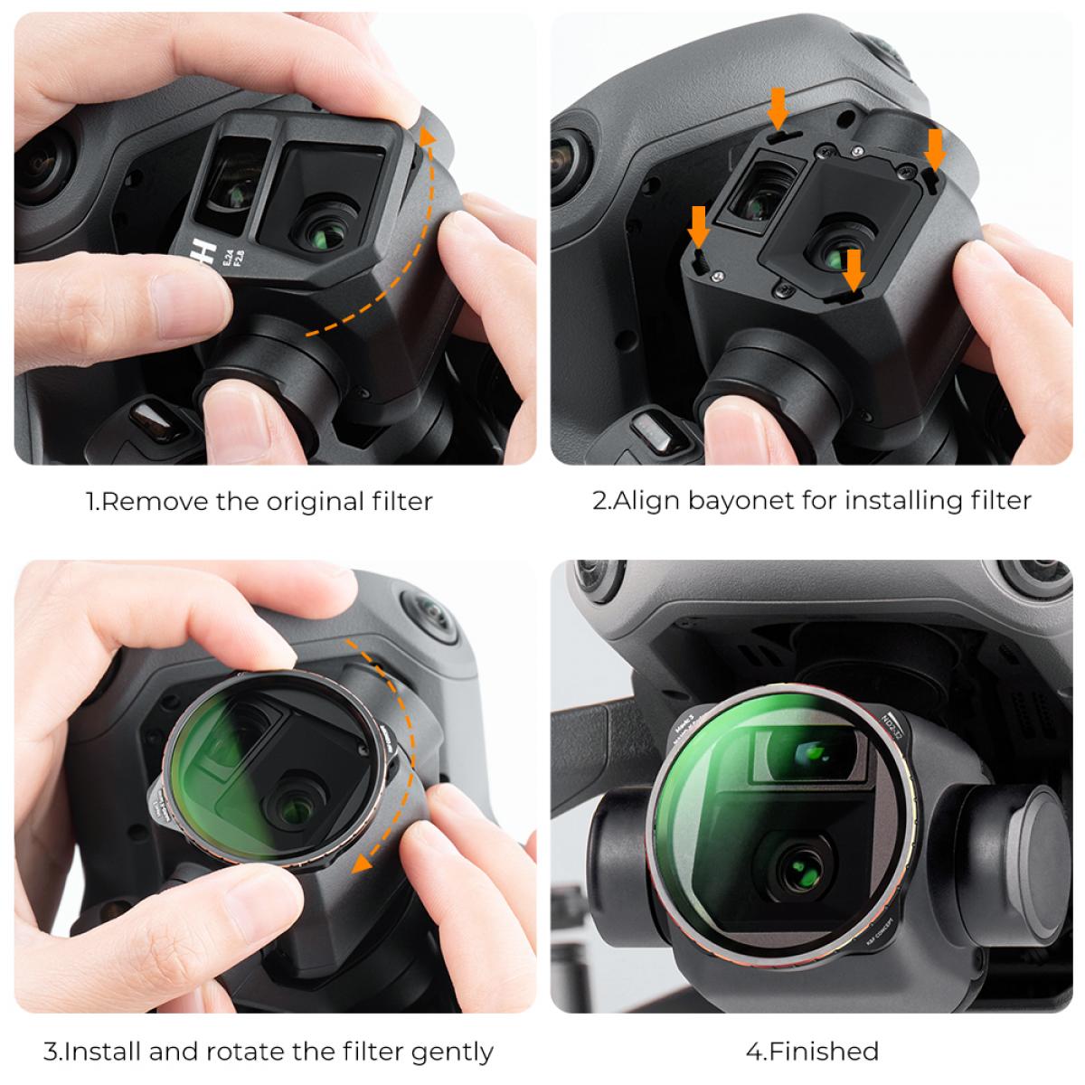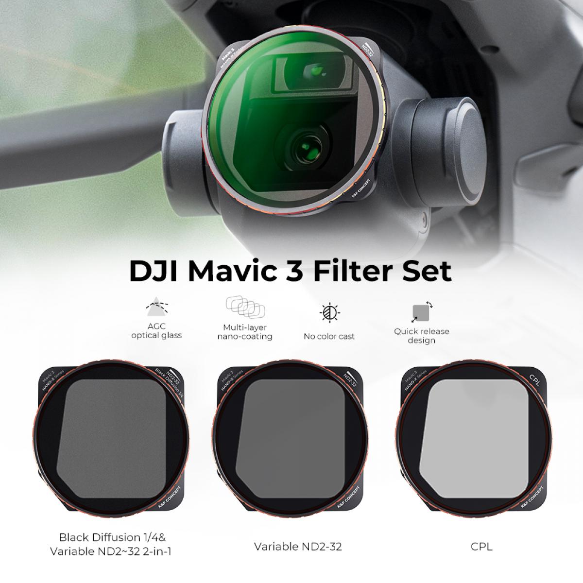 - 1* Variabilný filter ND2-ND32 + 1* CPL filter + 1* ND2-ND32 a čierny difúzny 1/4 multifunkčný filter 2 v 1. Vhodný pre DJI Mavic 3/DJI Mavic 3 Cine.