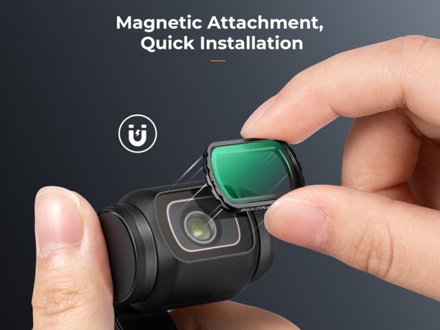 Vylepšite svoju videografiu s DJI Osmo Pocket 3 pomocou magnetického filtra K&F Concept. Čierna hmla 1/4 objektívu s jednostrannou povrchovou úpravou vylepšuje vaše zábery tým, že znižuje odlesky a vytvára filmovú atmosféru, čím zabezpečuje, že vaše vizuálne zábery vyniknú jasnosťou a štýlom.