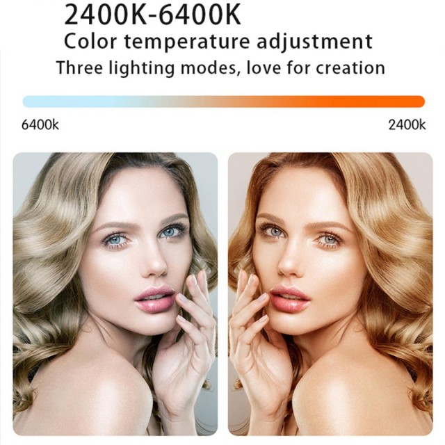* 【3 nastaviteľné farebné režimy】Vstavaných 90 guličiek teplej bielej lampy a 90 guličiek studenej bielej lampy, teplota farieb 2400K-6400K. Teplé svetlo, prirodzené svetlo a studené svetlo možno rýchlo nastaviť pomocou rolovacieho kolieska podľa zmeny scény použitia;