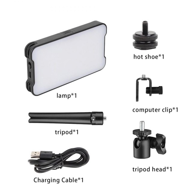 * 【Vreckový fotoaparát Fill Light】Tenký ako 18 mm a váži len 144 g veľkosti dlane, je kompaktný a ľahký a možno ho ľahko prenášať aj vo vrecku. Ako multifunkčné mini fotografické výplňové svetlo je ideálne na videokonferencie, natáčanie videí, rozhovory, živé vysielanie, YouTube, štúdiové osvetlenie.